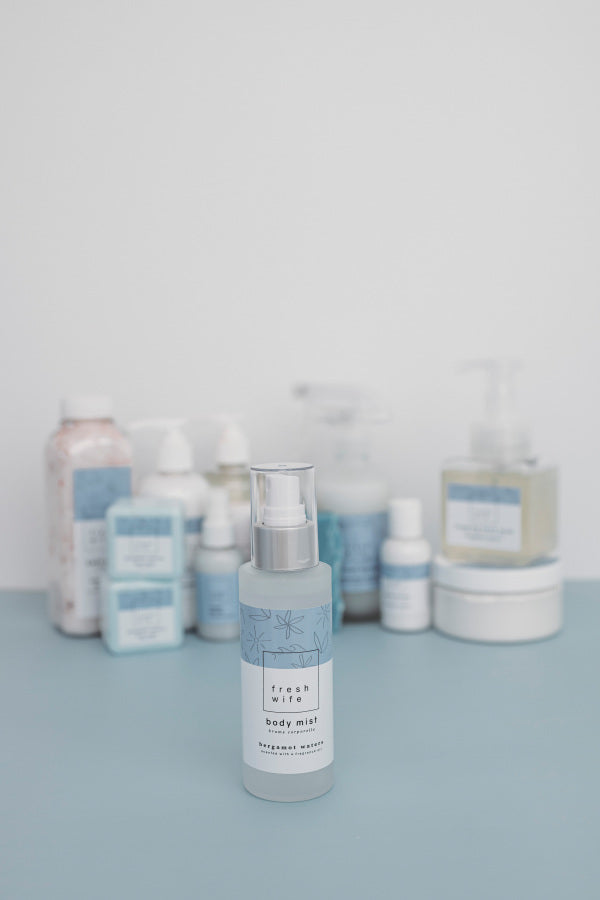 A gentle refresh, anytime you need it. Our body mist is a light, mood-lifting spray designed to wrap you in scent without overwhelming your senses. It's perfect for layering your favorite Fresh Wife scent.